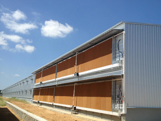 ZR濕簾降溫系統(tǒng)的降溫過程是在基核心-ZR紙墊內(nèi)完成的。在波紋的纖維紙表面有層薄薄的水膜,當(dāng)室外干熱空氣被風(fēng)機(jī)抽吸穿過紙墊時,水膜上的水會吸收空氣中的熱量進(jìn)而蒸發(fā)在水蒸氣,這樣經(jīng)過處理后的涼爽濕潤的空氣就進(jìn)入室內(nèi)了。這自然的過程猶如風(fēng)吹過水面一樣。